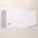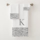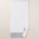 Sur cet ensemble de serviettes de bain élégant, un fond blanc contraste avec de petites plumes argentées scintillantes en bordure. Élégant minimaliste moderne. Peut être personnalisé avec une lettre sur la grande serviette.