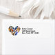 Étiquettes de adresse à aquarelle de plumes en forme de coeur. Les couleurs sont jaune, orange, bleu, vert et marron. Certains ont des rayures, des points, des motifs tribaux et d'autres arrangements décoratifs créatifs uniques. Placez-vous sur un arrière - plan vert menthe.
