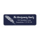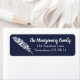 Conception de plumes motifs en bohème blanc tendance avec étiquette de adresse bleu marine.