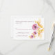 A coordinating reply card with three delicate, watercolor flowers in shades of plum and pink with golden leaves.