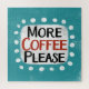 "Plus de café s'il vous plaît" est un design de texte amusant avec une forme d'accent blanc entourée de points blancs texturés.