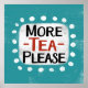 "More Tea Please" est un joli design de texte en bleu avec du texte en noir et rouge, avec une forme d'accent blanc et des points blancs à texture blanche.