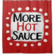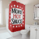 "More Hot Sauce" est un design de texte mignon en rouge avec du texte en noir et rouge, avec une forme d'accent blanc et des points blancs à texture blanche.