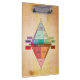 This geology clipboard features a plutonic QAPF diagram, used in geology to classify intrusive igneous rocks by their percent compositions of Quartz, Alkali Feldspar, Plagioclase Feldspar, and Feldspathoids. The colourful diamond-shaped figure appears on an old, stained parchment paper background. Of course, it's really acrylic plastic.