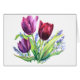 Spring tulips in purple and burgundy, fresh and sweet, with a handful of blue bells and forget-me-nots added to make a beautiful bouquet. A watercolor right from the garden of P.Allingam Carlson. Card.