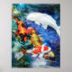 Brightly coloured fish swim through the waters of a garden pond, Nishikigoi (koi) are symbols of affection or love. Poster/print.