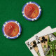 Montrez votre amour pour l'été avec ce thème de pêche puces de poker. Ce design de pêche douce et veloutée présente des tons chauds et lumineux de rougeur, écarlate, ambre, corail et lilas. Personnalisez en modifiant ou en supprimant le texte. J'ai créé ce motif à partir d'une image dans ma peinture acrylique originale.