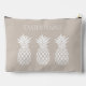 Ce joli sac accessoire cosmétique personnalisé fourre-tout présente des ananas blancs classiques sur un arrière - plan de beige neutre doux. Personnalisez avec votre choix de nom ou de texte spécial à l'avant et à l'arrière.
