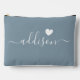 Pochette À Accessoires Bridesmaid Script moderne Dusty Blue Heart
