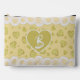 Ce mignon sac cosmétique est recouvert de coeurs tourbillonnant en pointillés de beige et d’or, c’est le sac parfait pour votre maquillage, stylos ou petits essentiels. Vous pouvez le personnaliser avec votre droit initial au centre de ce grand coeur audacieux ou simplement le laisser vide. S'intègre bien dans votre fourre-tout ou le montre sur votre vanité. C'est une façon amusante de porter un petit morceau de vous où que vous alliez.