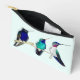 Colibris à l'aquarelle peinte à la main pour les amateurs d'oiseaux avec trois espèces de colibris, un colibri Coronet, un colibri à bec large et un colibri à bec long sur un arrière - plan bleu-vert clair.