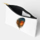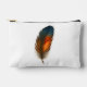 Une plume détaillée avec des couleurs riches en dégradé du bleu à l'orange.