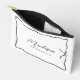 Un simple script manuscrit moderne minimaliste typographie cadeau de femme de mariage, encadré d'un cadre ondulé ruban doodle avec arc dans un style dessiné à la main. Style de coquette fantaisiste informel. Ces kits de maquillage amusants et pratiques sont parfaits pour se préparer avec la mariée le grand jour. Un petit cadeau mignon pour aider votre équipage à se sentir fabuleux pendant que vous riez, sirotez et prenez des photos inoubliables "se préparer" ensemble. Offrez-les à la soirée de bachelorette à l'avance.