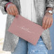 Sacoche d'accessoire de nom de signature rose et blanc Dusty pour vos demoiselles d'honneur. Modifiez la couleur arrière - plan de style rose pâle pour qu'elle corresponde à votre palette mariage. Si vous modifiez la couleur de police blanche, vérifiez que vous customisez également la couleur de l'ombre portée. Le style de police est un script de calligraphie manuscrit moderne et élégant.