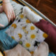 Grand sac d'accessoires de voyage zippé qui présente une photo de marguerites blanches baisées de rosée. Un joli design floral ! Parfait pour tenir maquillage, parfum, bijoux...