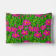 Pouch dans un motif de fleurs sauvages roses fuchsia profonds, aux centres jaunes, dans un champ d'herbe verte