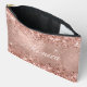 Ces luxueuses pochettes accessoires sont un cadeau personnalisé pour votre femme de chambre. Vous pouvez modifier le style de police (il y a deux calques), la taille et la couleur pour correspondre à votre thème mariage. La parties scintillant en or rose, les étincelles et la feuille en métal brossé sont créés avec des éléments d'art numérique qui s'impriment comme une photo ou une image.
