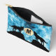 Loup hurlant Pleine lune bleu noir Monogramme Personnalisé Pouch Accessoire. Accessoire de mode cool - sac pour lui. Abstraite fumée blanche et bleue neigeuse d'hiver géométrique avec silhouette de loup noir.