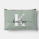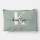 Ce sac accessoire vert sauge simple et élégant avec votre prénom dans une police de script tendance en noir et votre première initiale dans une police casquette moderne en blanc est parfait pour vous. C'est design, tendance et pourtant très classique. Il sera fabuleux pour l'école, la salle de sport, le travail, votre voiture - fera garder vos bijoux, maquillage ou articles de toilette dans un seul endroit lorsque vous êtes loin de chez vous.