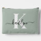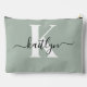 Cette pochette simple et élégante, vert sauge, grand accessoire avec votre prénom dans une police de script tendance en noir et votre première initiale dans une police casquette moderne en blanc est parfaite pour vous. C'est design, tendance et pourtant très classique. Il sera fabuleux pour l'école, la salle de sport, le travail, votre voiture - fera garder vos bijoux, maquillage ou articles de toilette dans un seul endroit lorsque vous êtes loin de chez vous.