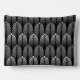 Pochette dans un motif de papier peint Art Déco vintage à base de plumes stylisées - tons gris argenté / gris sur un arrière - plan noir