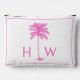 Ce sac accessoire d'inspiration côtière dispose d'un palmier classique en rose sur un arrière - plan blanc avec un monogramme que vous pouvez personnaliser avec votre choix d'initiales. L'arrière est orné d'un arrière - plan rose massif et d'un motif de palmier blanc.