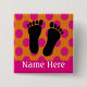 Podiatrist Name Buttons, Add your own name, customizable design with silhouette of feet on a polka dotted background.