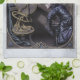 Kitchen/Tea Towel: "Evening Star" (Edgar Allan Poe), vintage art and historical poetry with a modern twist. An astronomer in his observatory gazes enthraled at the moon and stars in this lovely Victorian illustration of 1846 by Daniel Maclise and F. P. Becker. The original black-and-white engraving is in the public domain, and I've remixed it with a modern twist by digitally hand-colouring it. To complement the enchanting imagery, I've incorporated a quotation from the beautiful 1827 poem Evening Star by Edgar Allan Poe: "'Twas noontide of summer,