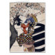 Poèmes accrochants sur un cerisier par Ishikawa Toyonobu. La copie japonaise vintage d'art de bois de graveur montre une femme, intégrale, position, accrochant des poèmes dans un cerisier de floraison. Ishikawa Toyonobu (石川豊信 1711 - 1785) était un artiste japonais d'impression d'ukiyo-e. On dit que parfois il est la même personne que Nishimura Shigenobu, un artiste contemporain d'ukiyo-e et l'étudiant dont de Nishimura Shigenaga au sujet très peu est connu. Un élève de Nishimura Shigenaga, Toyonobu a produit des beaucoup la "laque monochrome imprime" (urushi-e) qui a reflété l'influence d'Okumura Masanobu aussi bien. Beaucoup de ces derniers étaient yakusha-e (copies d'acteur) et bijinga (images de belles femmes), y compris des images des courtisanes debout, dont les visages ont donné un impassivity typique des travaux de l'école de Kaigetsudō.