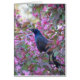 Magnifique pantalon bleu et noir perché sur une branche au milieu de belles fleurs de pomme de crabe rose en pleine floraison. Un beau cadeau pour vous-même ou pour quelqu'un de spécial!