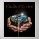 Poignée avec affiche de soin