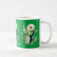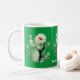Cette tasse à café est décorée de trois beaux cactus, cactus sur un arrière - plan vert avec les mots "poignée avec soin" en dessous du cactus central.