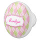 Une poignée de golf pour dames ou filles amusantes personnalisez avec votre propre nom sur un Jacquard plaid style arrière - plan en rose et vert. Lit Marilyn ou personnalise avec ton propre nom. Design graphique unique par Sarah Trett.