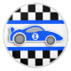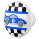 Éclairez vers le haut de la chambre à coucher ou de la salle de jeux d'un garçon avec ces boutons automatiques de traction d'art de drapeau de voiture de course d'amusement dans le bleu, noir et blanc. Personnalisez avec votre propre initiale actuellement lit l'art original de © d'E. et conçoit par Sarah Trett.