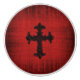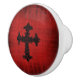 Poignée de porte ou de tiroir de style gothique avec un aspect velours rouge foncé et une croix gothique noire au centre. © Dark Heart Desires.