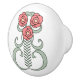 Poignée en céramique de style Art Déco , représentant trois fleurs roses entrelacées de vert .