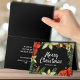 Beautiful poinsettias, berries, orange slices and evergreen branches on black with your greeting in chic white lettering, these folded Christmas greeting cards are perfect way to send friends and family holiday wishes. MATCHING items in our collection.