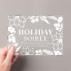 This elegant and chic holiday soirée/Christmas party invitation features a frosted acrylic background with poinsettia flowers, pine leaves, holly leaves, and berries in white. Great for corporate or business as well. Personalize it for your needs. You can find matching products at my store.