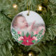 Pretty ornament to which you can add your own photo in honour of your baby's first Christmas. It's decorated with a colourful floral arrangement consisting of poinsettia, roses, and mistletoe.