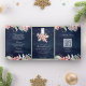 Poinsettia Christmas Candle QR Code Navy Wedding Tri-Fold Invitation