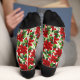 * A pattern of Christmas Pine poinsettia flowers design covers these all-over-print socks.