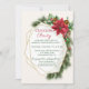 This design features elegant watercolor Poinsettia, holly, mistletoe, pine, cone and winter Sleigh Bells surronding the geometric golden frame.
