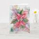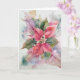 A beautiful watercolor depiction of a poinsettia plant showcases vibrant red and green leaves, accented by soft touches of pink and white. The background melds into soft pastels, enhancing the delicate and festive nature of the composition.