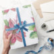 Wrap your gift with the beauty of the traditional Poinsettia flower pattern. Red and green leaves from an original watercolor painting