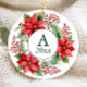 Poinsettia Wreath Photo Monogram Year Ceramic Ornament
