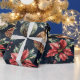 Spread some holiday cheer with this elegant Poinsettia and Ornament wrapping paper. A black background with gorgeous poinsettias and elegant Christmas ornaments.
