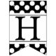 Ce joli et élégant drapeau d'étamine est parfait pour des fêtes d'anniversaire, des douches, des fêtes d'anniversaire et n'importe quelle autre célébration. Trois motifs sont montrés ; un avec le pois noir et blanc et deux autres avec différentes versions des rayures noires et blanches. Vous customisez le lettrage.