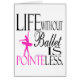 This design with a saying "Life without ballet is pointeless" features a ballet dancer in a tutu standing en pointe over the word "pointe" highlighted in pink. A great gift idea for the ballet student, teacher, or their family. www.Gifts4Dancers.com