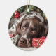 This adorable Christmas ornament, featuring a German Shorthair Pointer lying under a Christmas tree, is a wonderful gift for any Pointer lover.