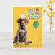 A truly adorable German Shorthaired Pointer pup in a party hat with confetti and a balloon is sure to bring fun birthday wishes to the GSP doggy mom or dad.